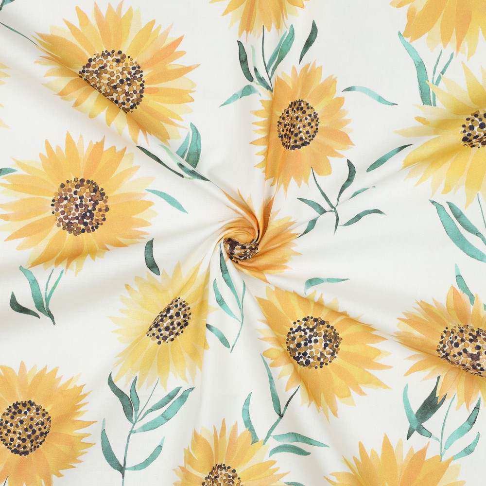 Popelina de algodón - impresión digital girasoles blanco