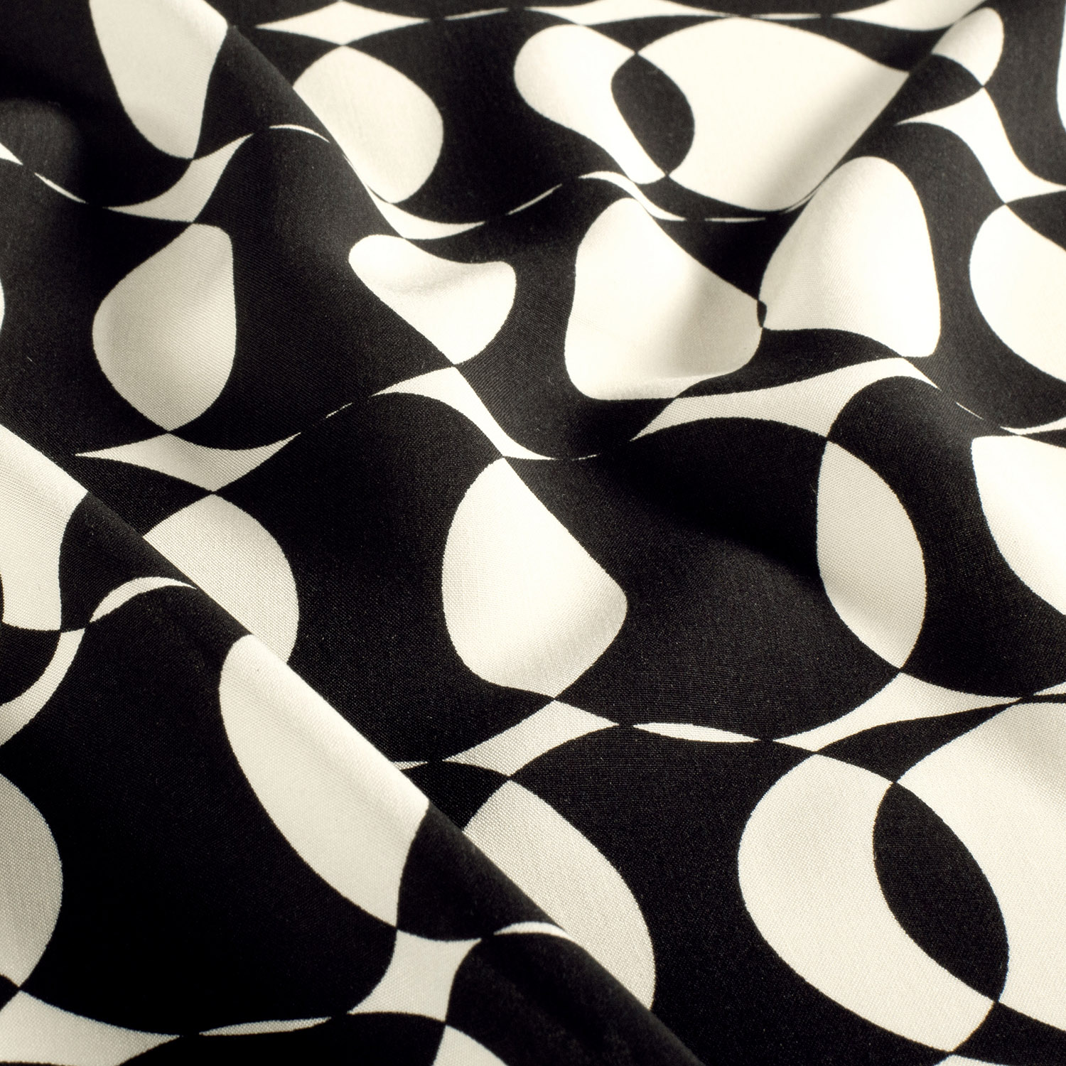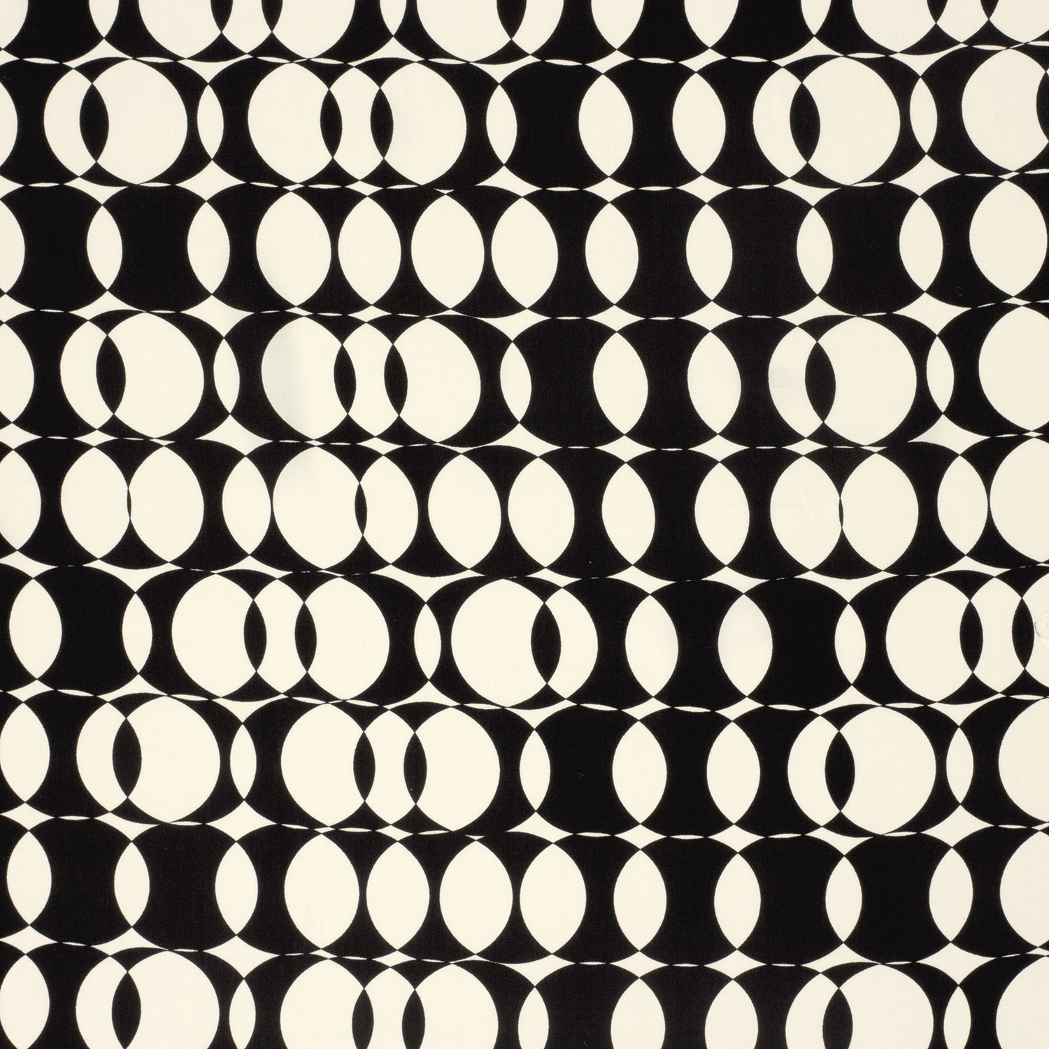 Esta tela aporta una auténtica sensación retro a tus proyectos de costura: sobre un fondo negro intenso, bailan círculos gráficos en tonos cálidos naturales – desde suaves matices crema y beige hasta tonos cálidos ocre y caramelo, pasando por delicados tonos grisáceos. Los círculos estilizados recuerdan al diseño de mediados de siglo y otorgan al patrón una apariencia atemporalmente elegante y a la vez juguetona.