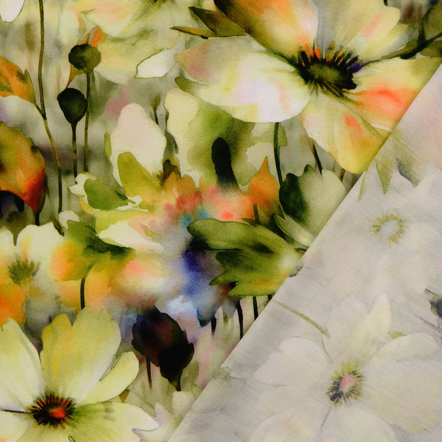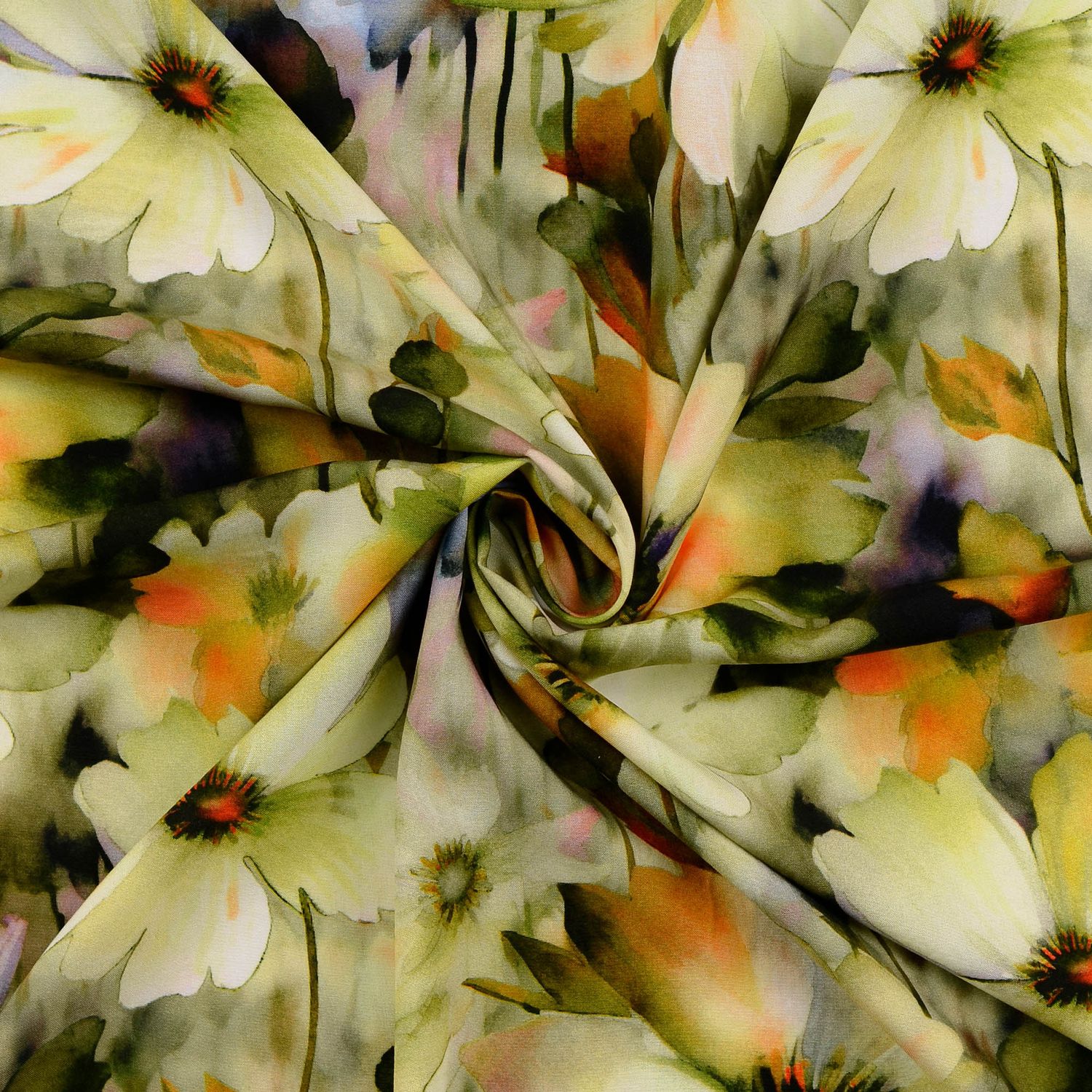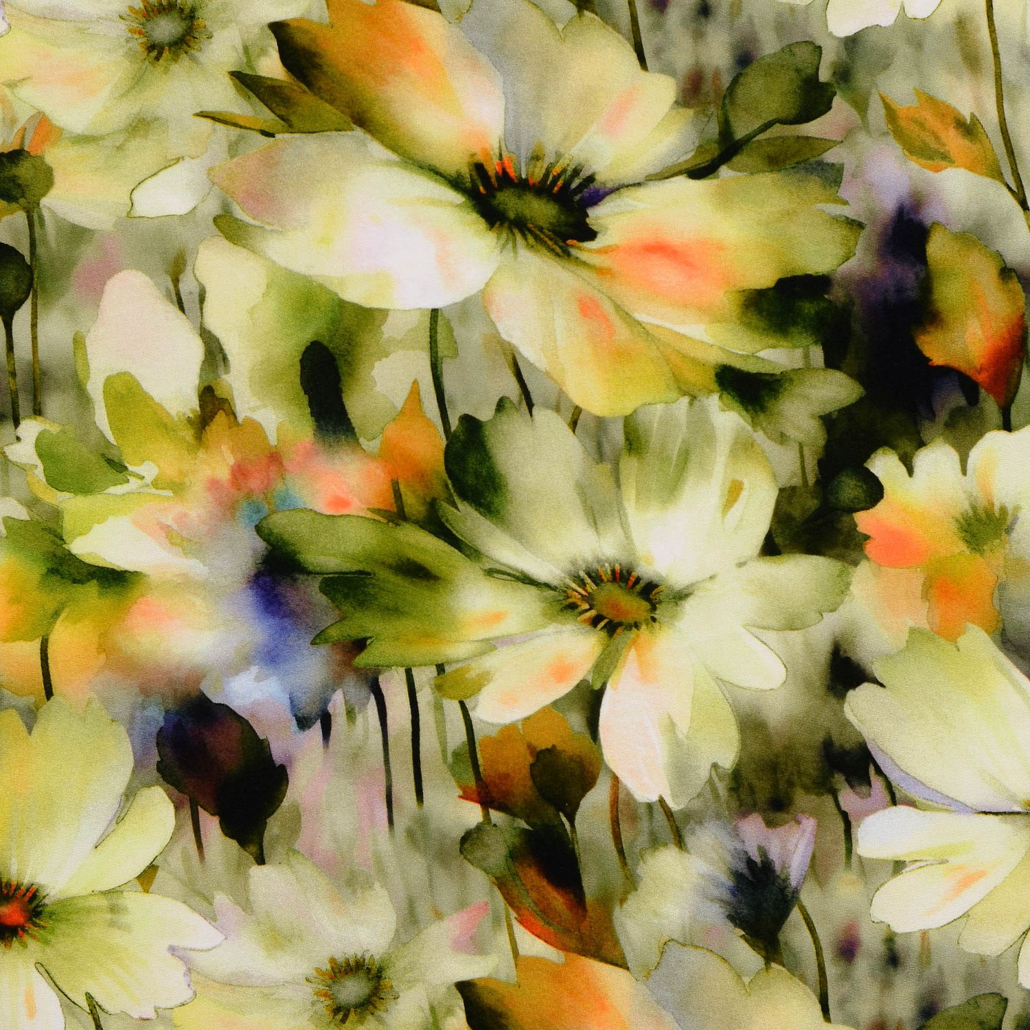 Popelina de viscosa - estampado digital flores acuarela verde
