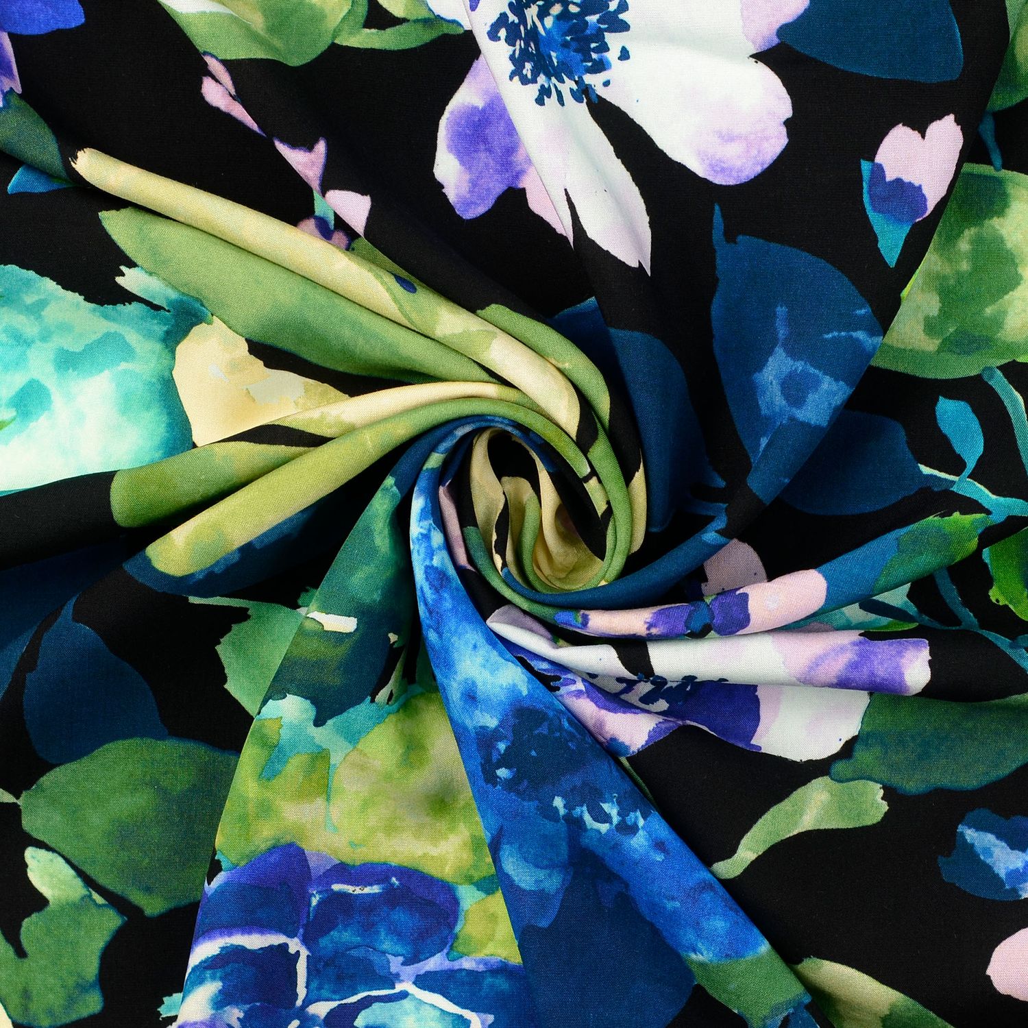 Popelina de viscosa - Estampado digital flores multicolor azul