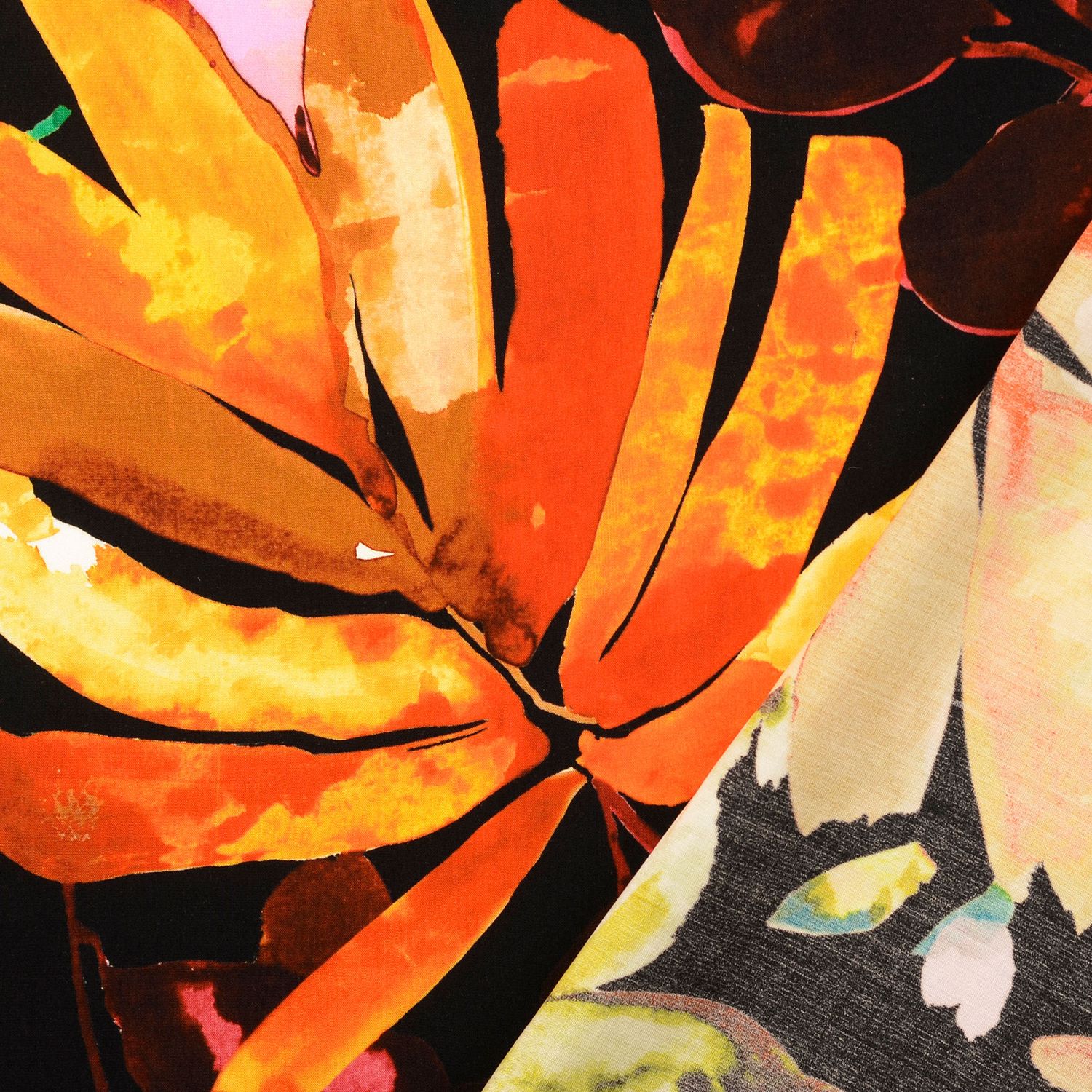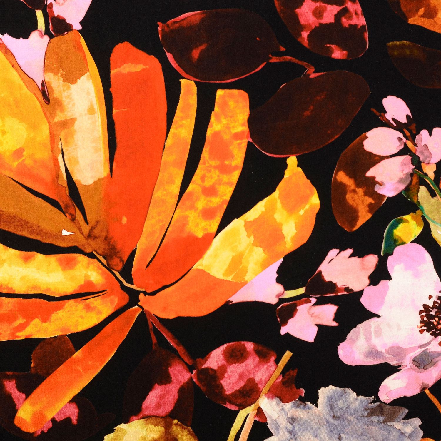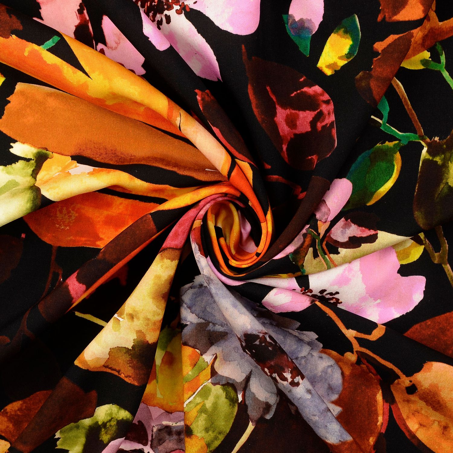 Popelina de viscosa - estampado digital flores multicolor naranja