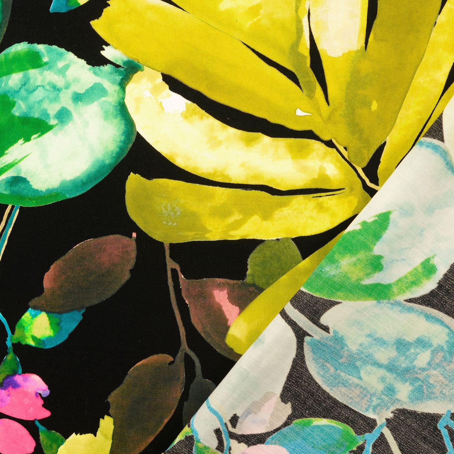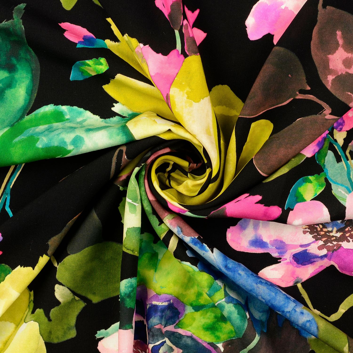Popelina de viscosa - estampado digital flores multicolor verde manzana