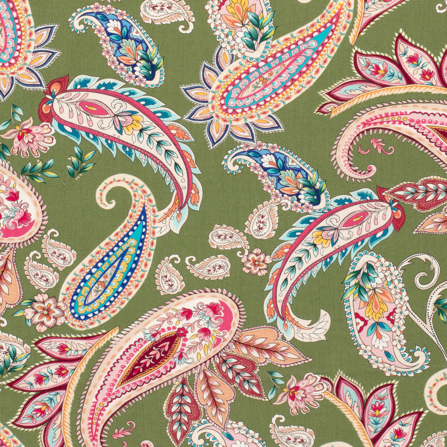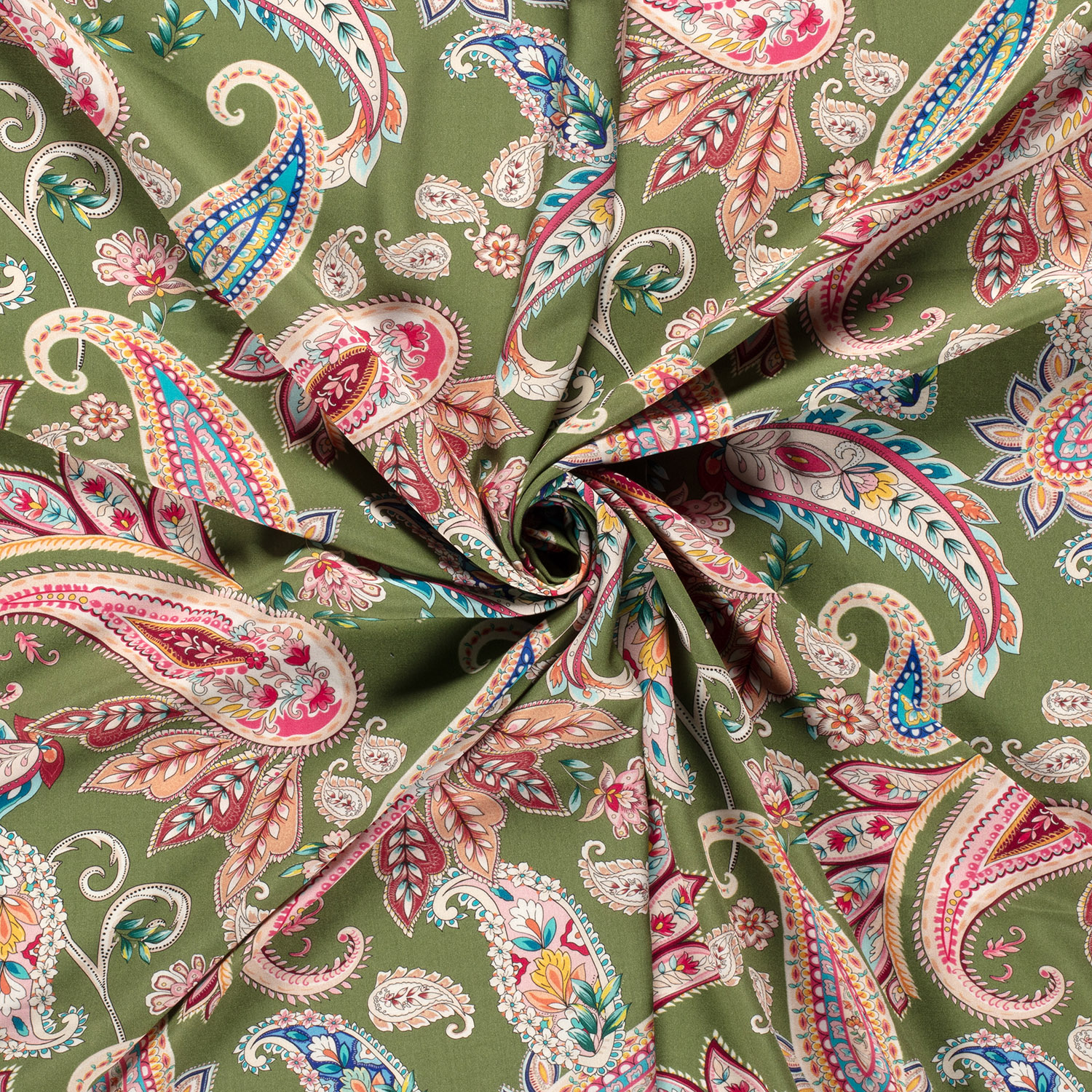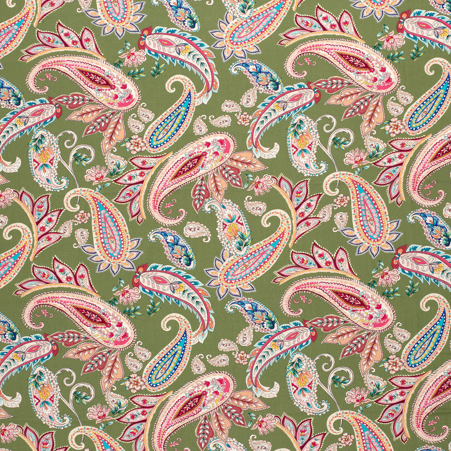 Popelina de viscosa - Estampado digital Paisley verde musgo