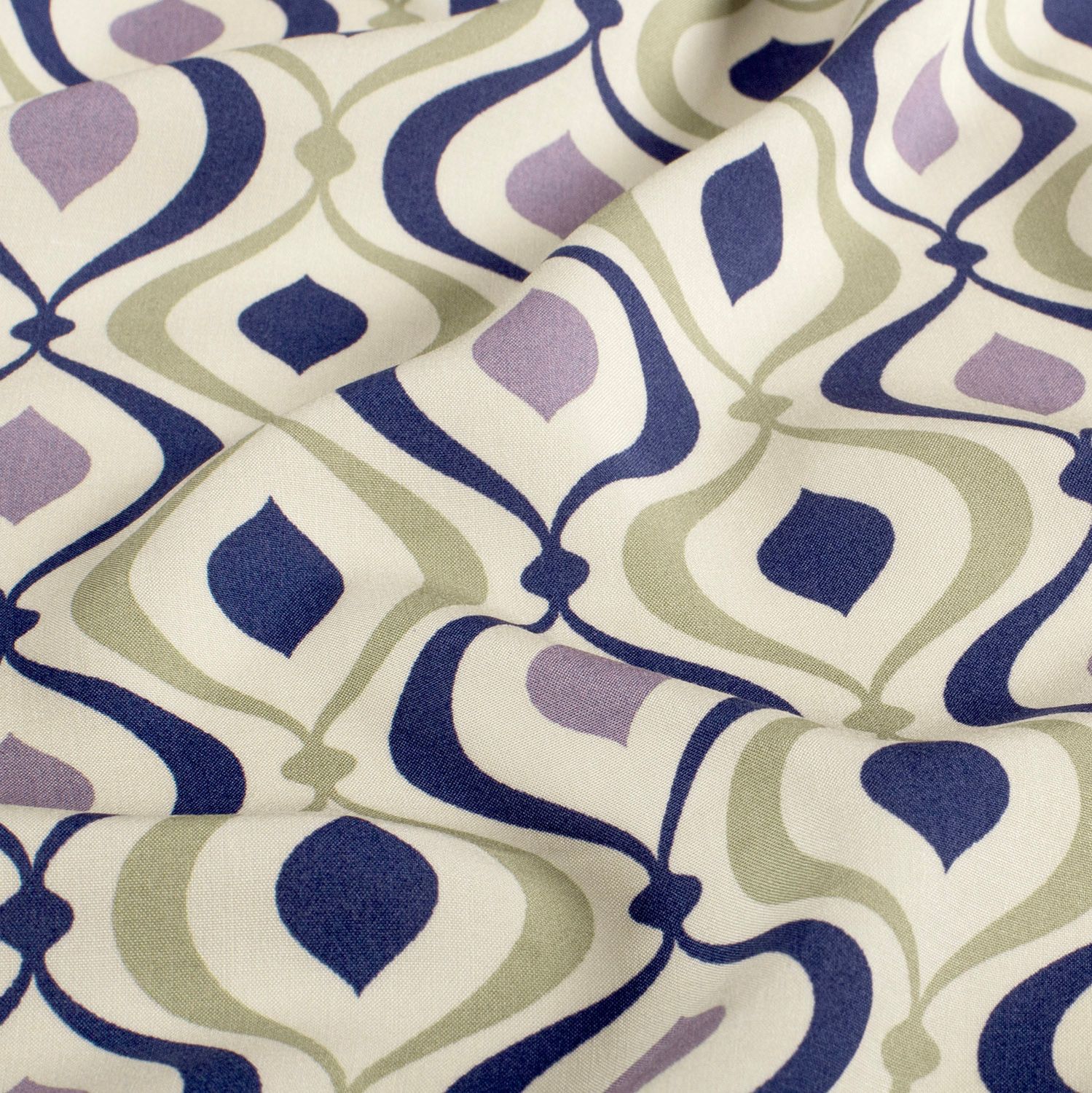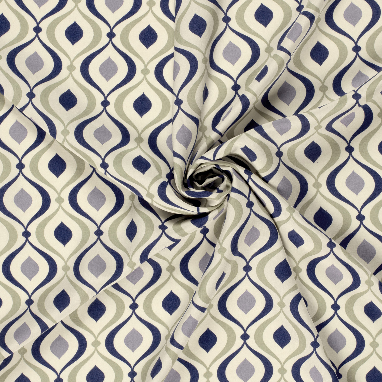 Popelina de viscosa - Estampado retro kaki azul blanco