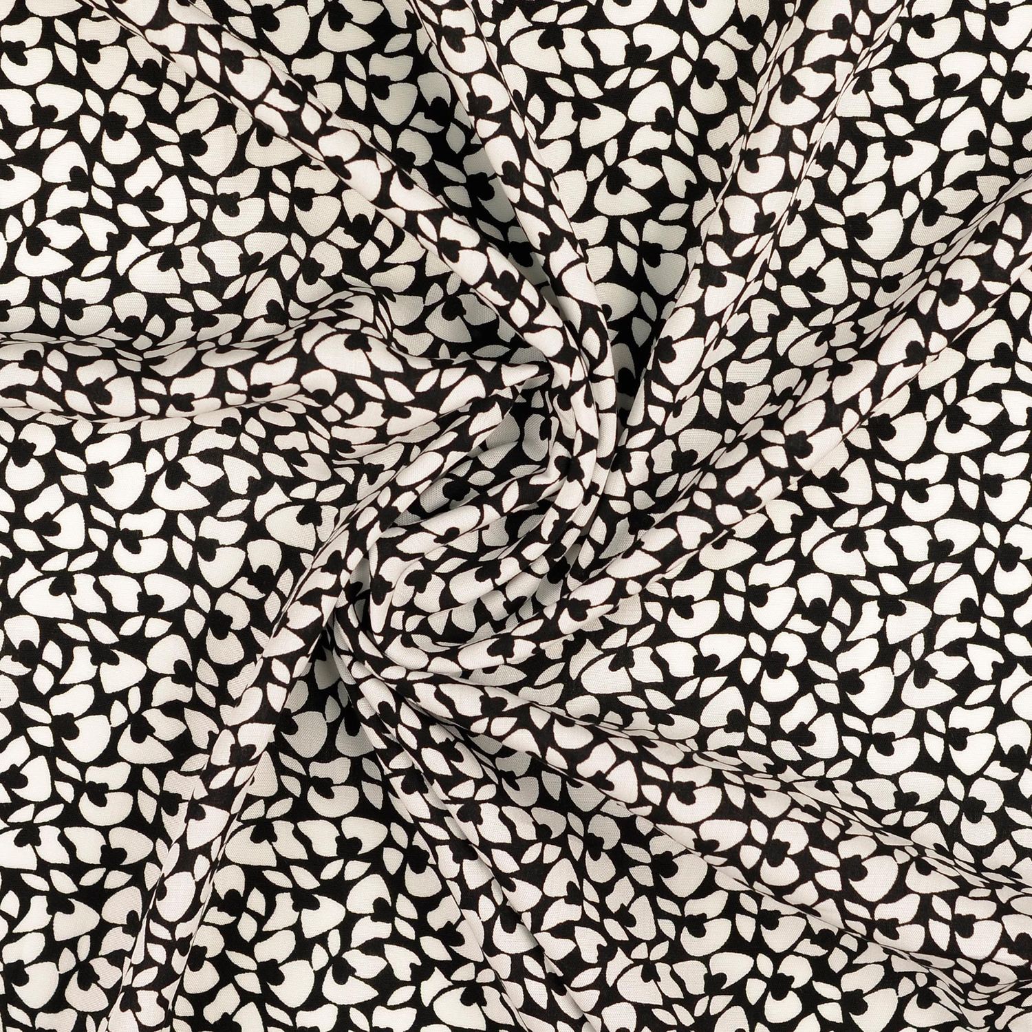 La tela, de caída suave, acaricia la figura y es ideal para blusas vaporosas, vestidos, túnicas, faldas o pantalones amplios. También se pueden confeccionar hermosos pañuelos o kimonos ligeros. Gracias al contraste en blanco y negro, la tela combina fácilmente con muchos colores y es adecuada tanto para el día a día como para ocasiones especiales.