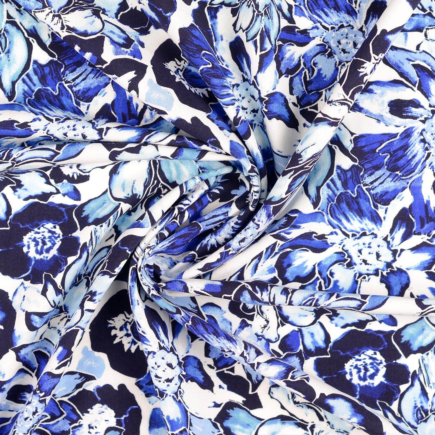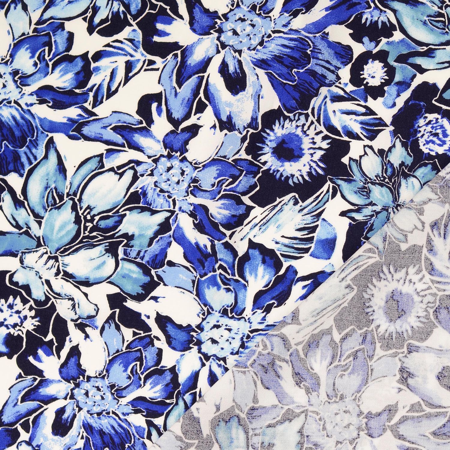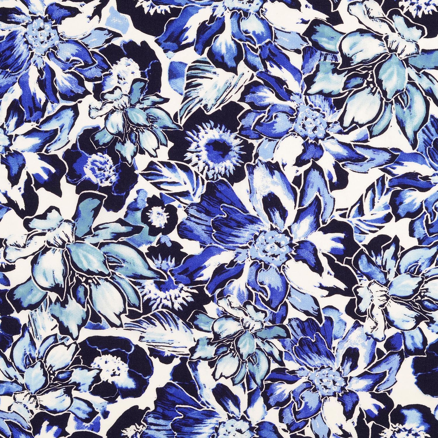 Popelina de Viscosa - Flores Navy