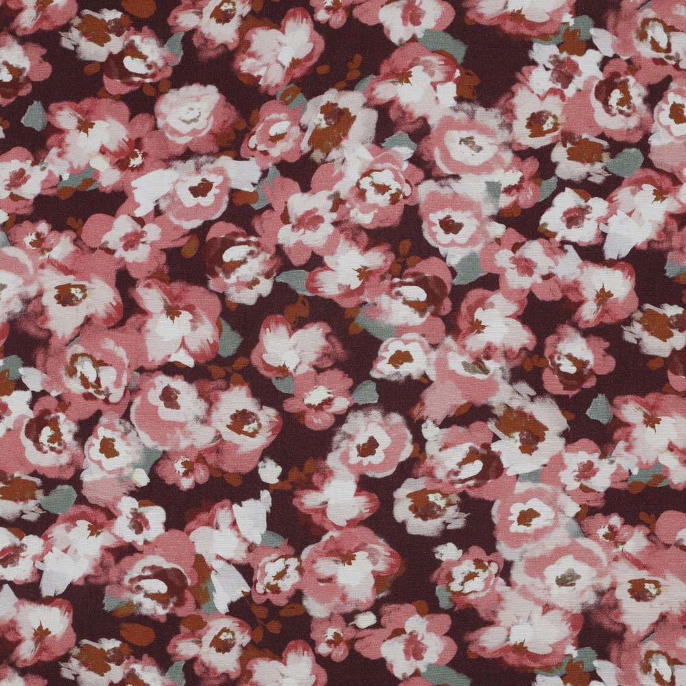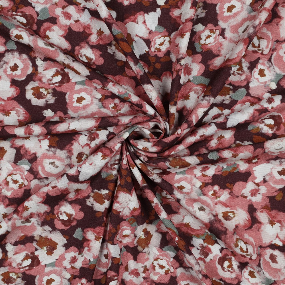 Popelina de Viscosa - Flores Rojas con Elasticidad