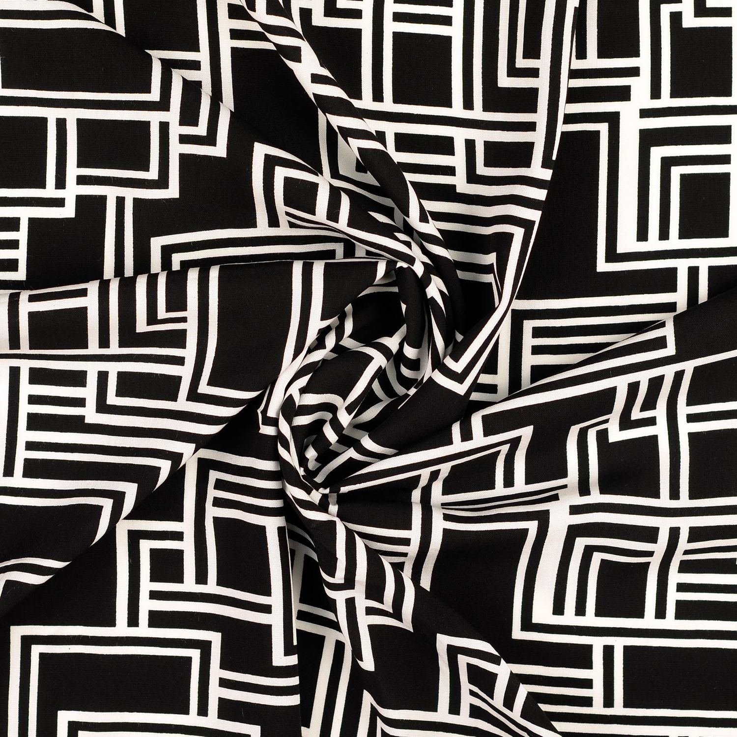 Popelina de Viscosa – Geo Blanco sobre Negro