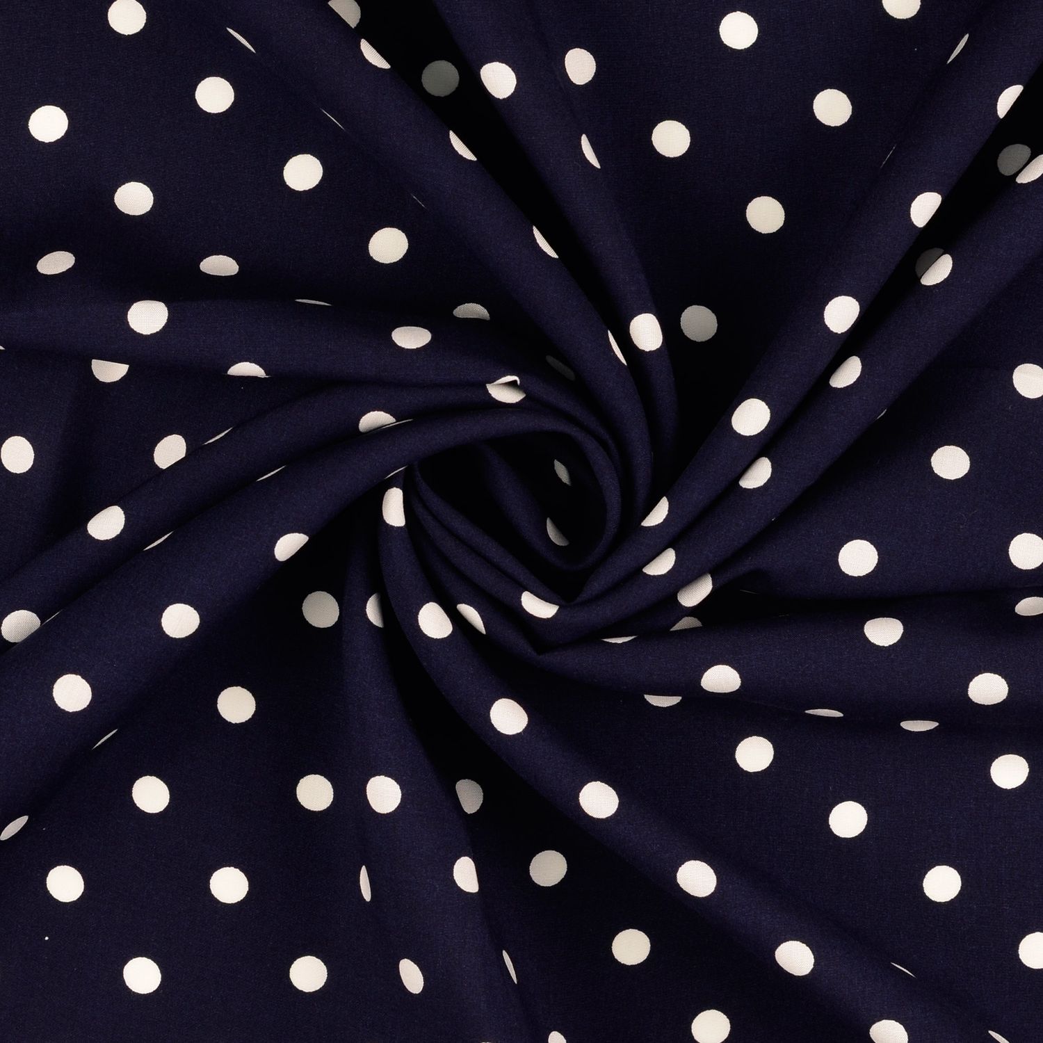Popelina de viscosa – Grandes lunares blancos sobre azul marino