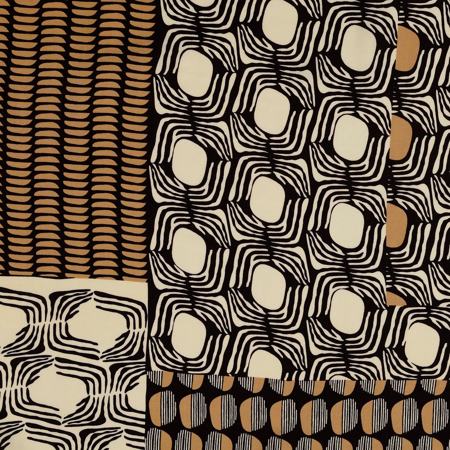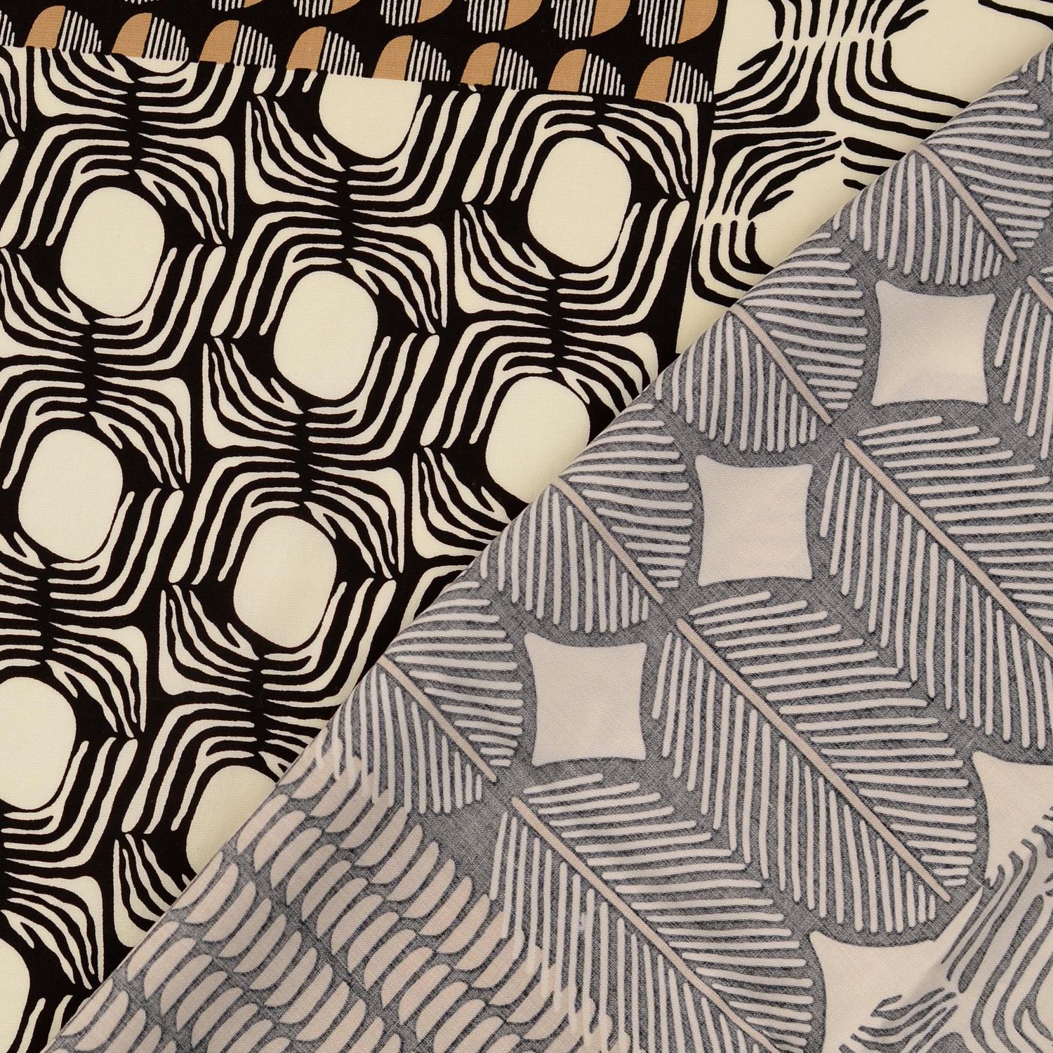 Las formas variadas – a veces claras y angulares, otras veces suaves y orgánicas – parecen pequeñas obras de arte en la tela y hacen que cada proyecto de costura sea un verdadero punto focal. La paleta de colores discreta y natural asegura que la mezcla de patrones nunca resulte invasiva, sino que se integre armoniosamente en muchos conjuntos y estilos.