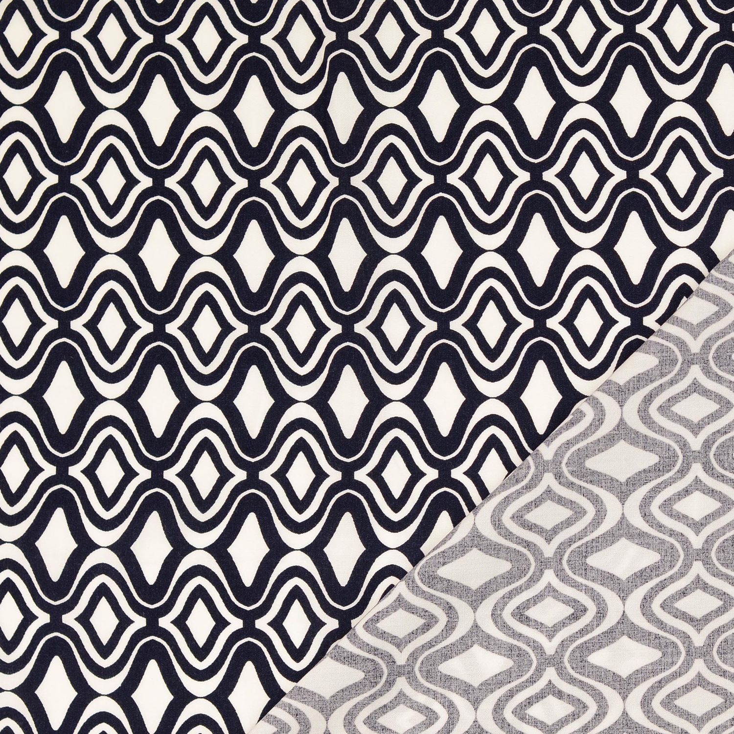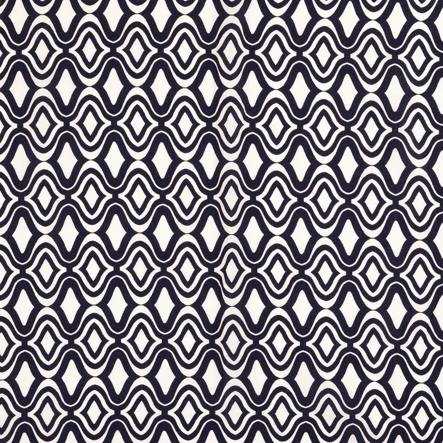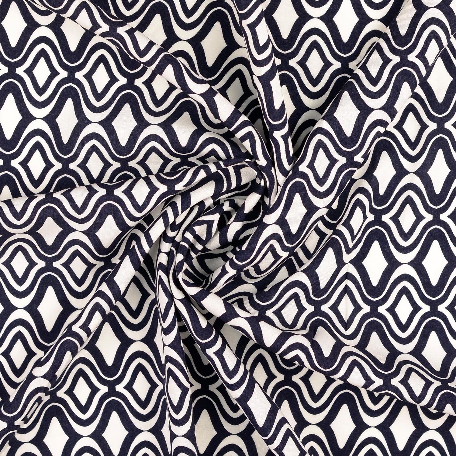 Popelina de Viscosa – Olas Retro Navy sobre Blanco