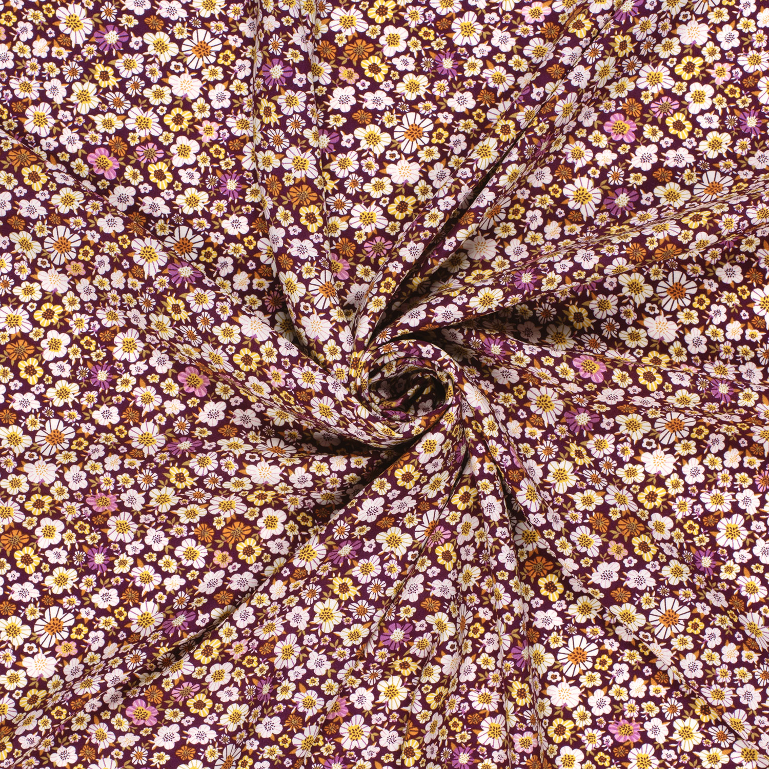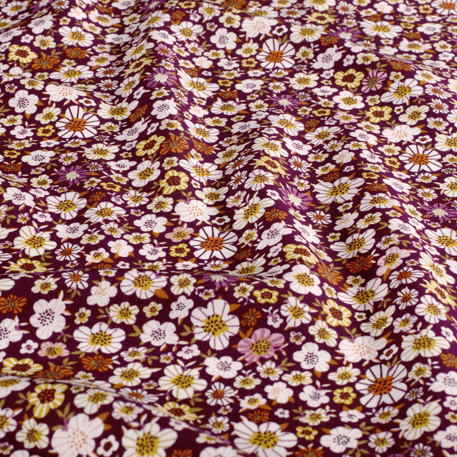 Popelina de Viscosa - Pequeñas Flores en Color Baya