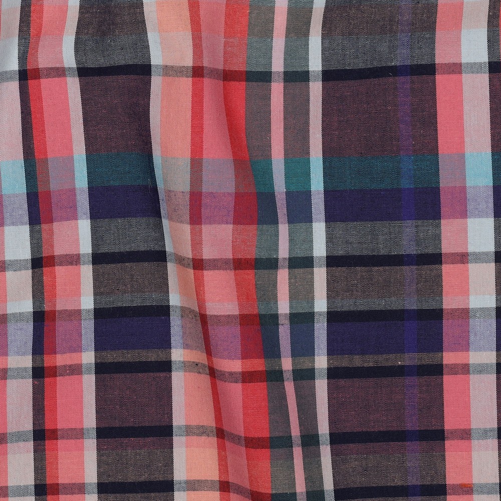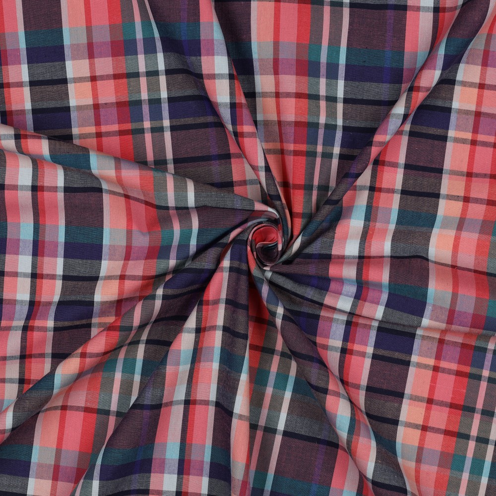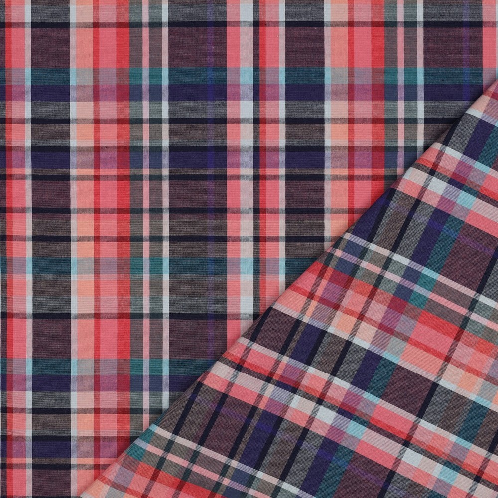 Un cuadriculado fresco que inmediatamente alegra el ambiente: suaves tonos coral y rosa se combinan con finas líneas crema formando un patrón de cuadros armonioso y atemporal. Gracias al tejido teñido en hilo, los colores son especialmente vivos y definidos: cada cuadro está claramente delimitado, otorgando a la tela un aspecto clásico y de alta calidad.