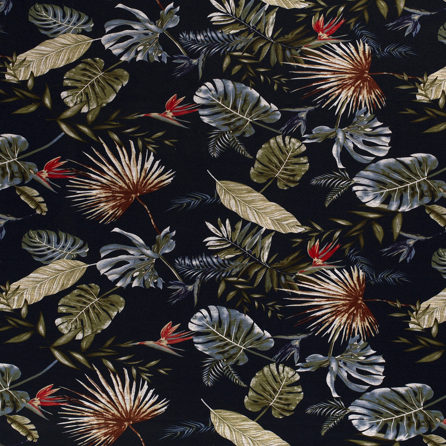 Tela de moda - Hojas tropicales Navy