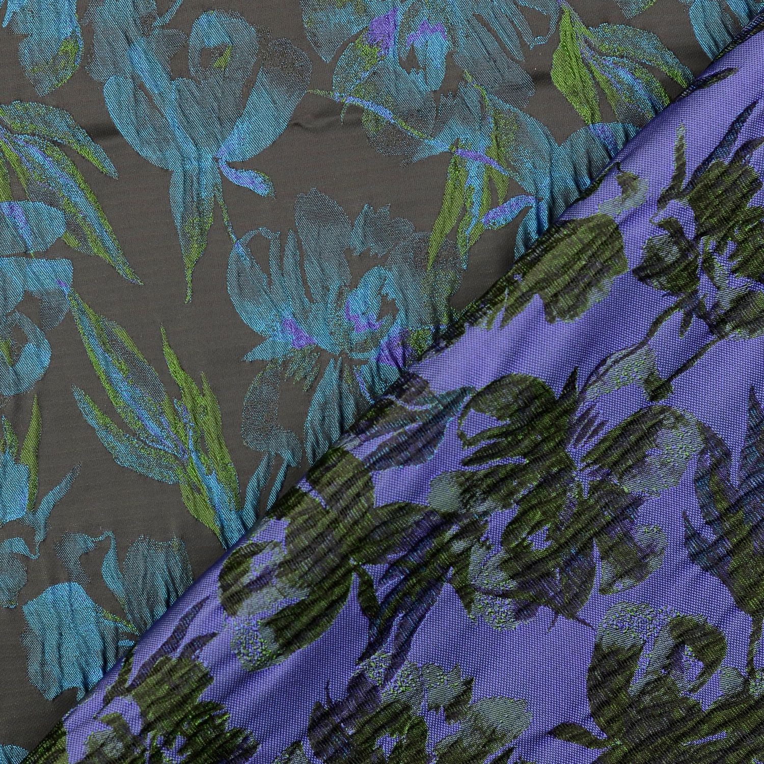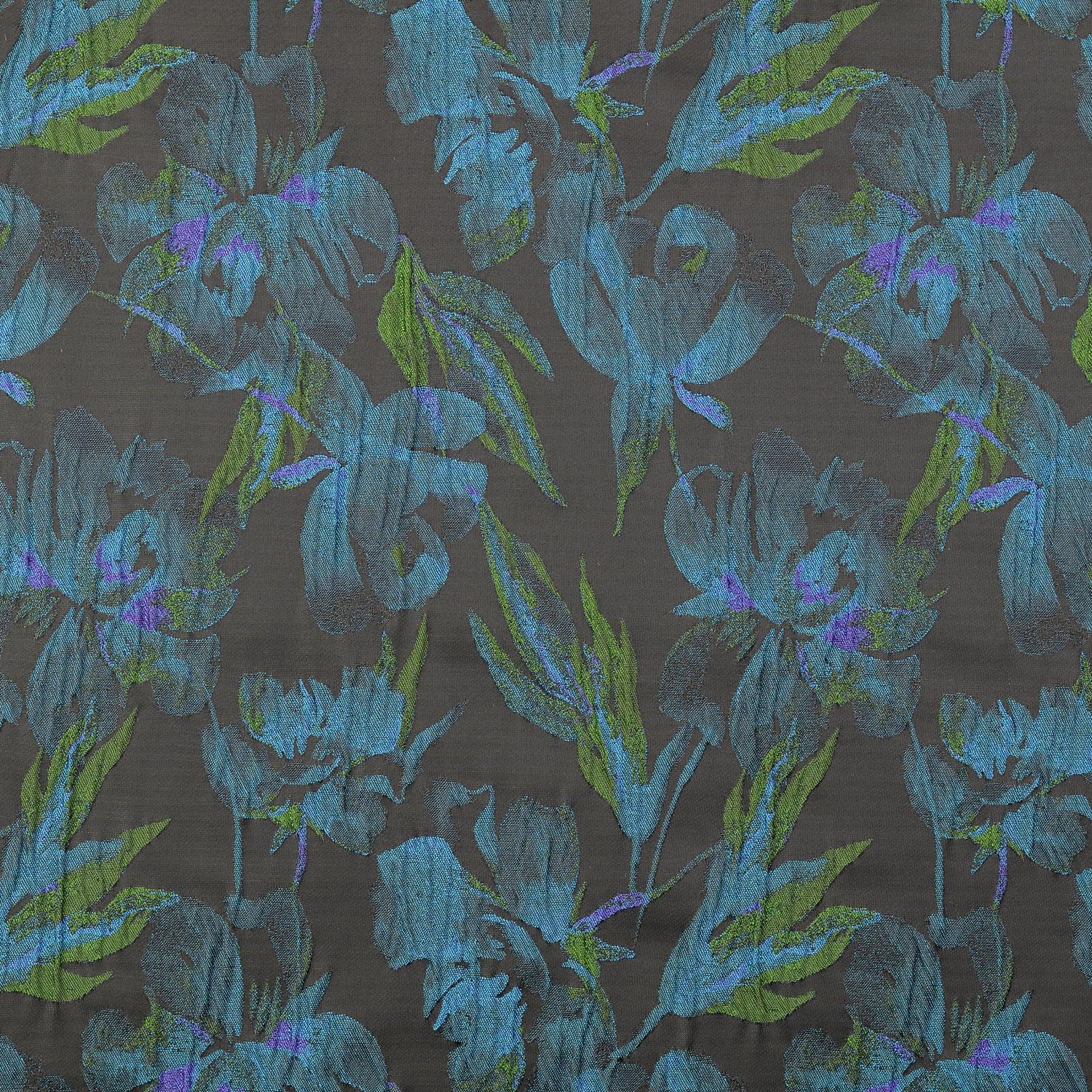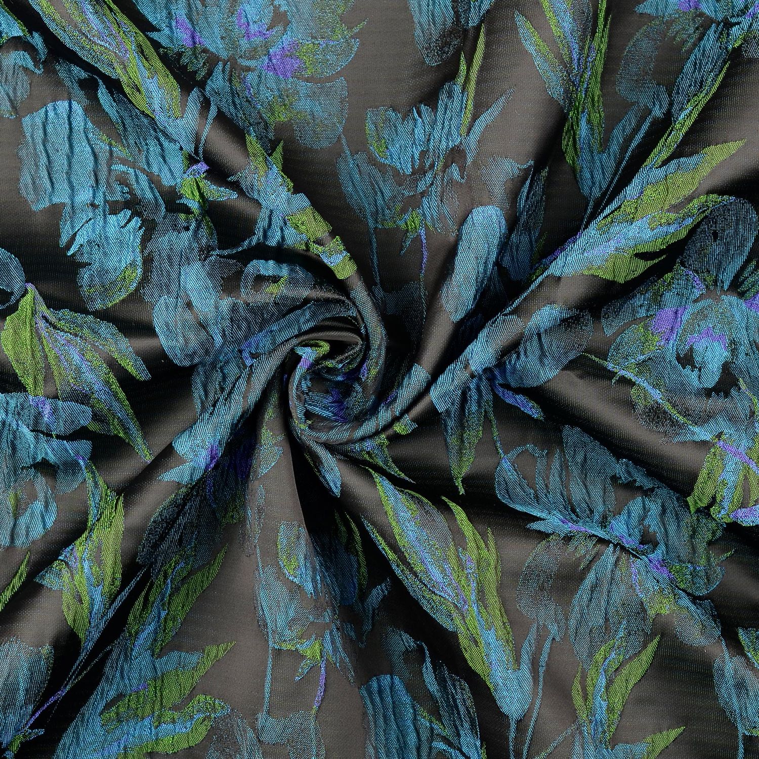 Una tela como una noche en un jardín tropical: sobre un fondo negro intenso florecen elegantes flores turquesas que se enredan en finas estructuras jacquard por toda la superficie. El discreto juego de colores entre negro y turquesa brillante aporta un toque sofisticado y moderno al diseño, perfecto para quienes desean combinar la elegancia sencilla con un aire de extravagancia.