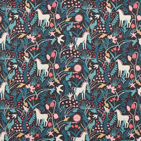 Tela decorativa Popelina de algodón Flores salvajes – púrpura/petroleo10,99 € / m (7,33 € / m²)