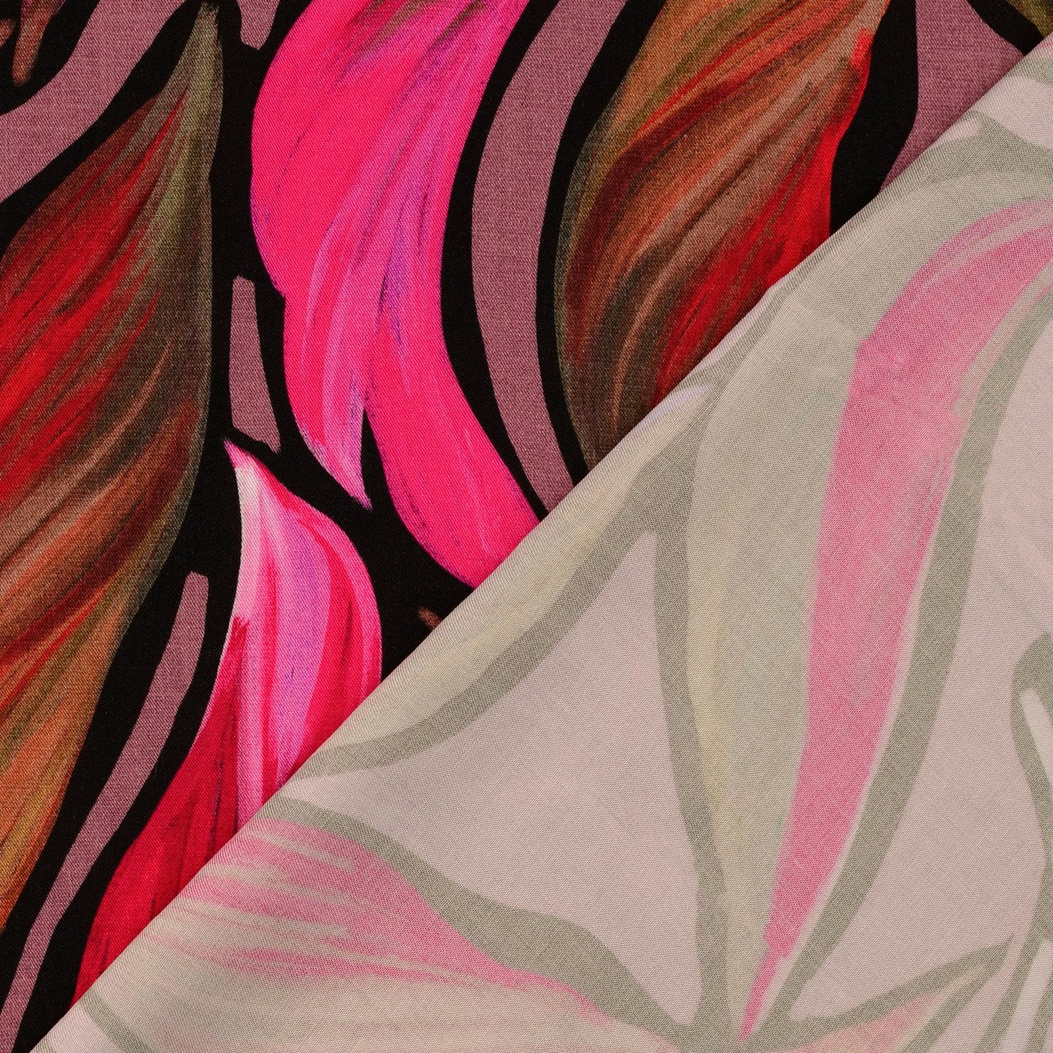 Una tela como un paseo por un jardín de verano romántico: hojas delicadas en varios tonos de rosa y rosado se extienden elegantemente sobre el fondo, formando un patrón vivo y a la vez armonioso. Las finas venas de las hojas y los suaves degradados de color le dan al diseño una profundidad especial, como si las hojas acabaran de ser dibujadas.
