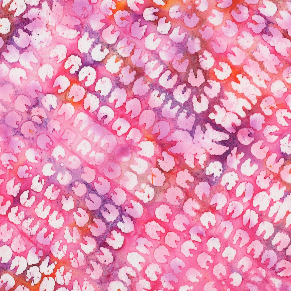 Una tela como un espectáculo de fuegos artificiales de verano: Esta tela de viscosa cautiva con un estampado batik brillante en tonos intensos de rosa y fucsia, atravesados por delicados matices blancos y rosados. Los suaves y fluidos degradados de color recuerdan a la pintura acuarela y aportan a cada proyecto de costura un toque artístico y vibrante.