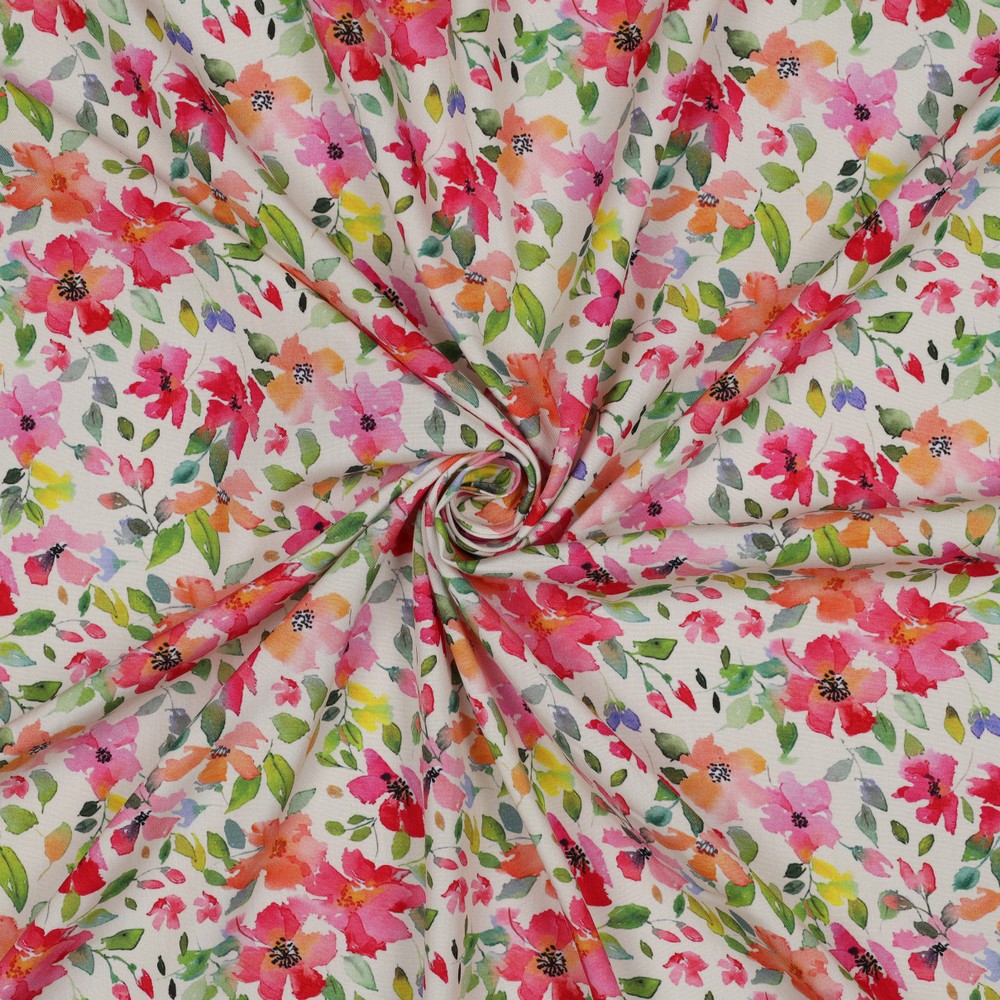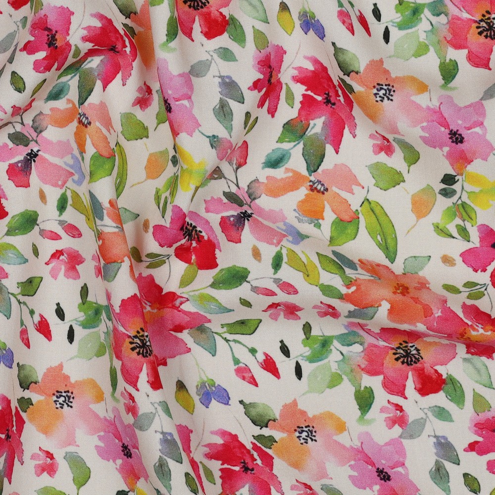 Viscosa - Estampado digital Flores Acuarela Ecru