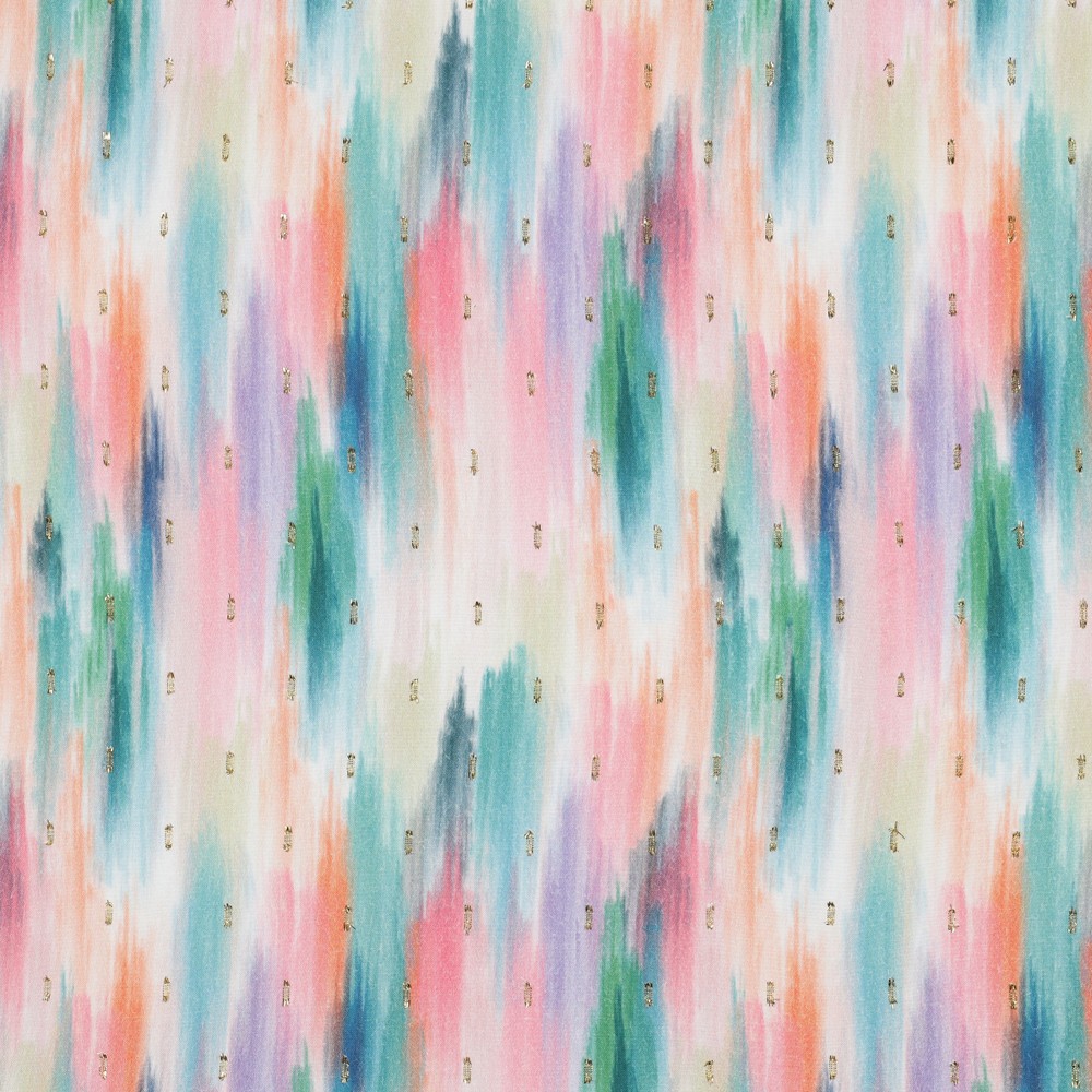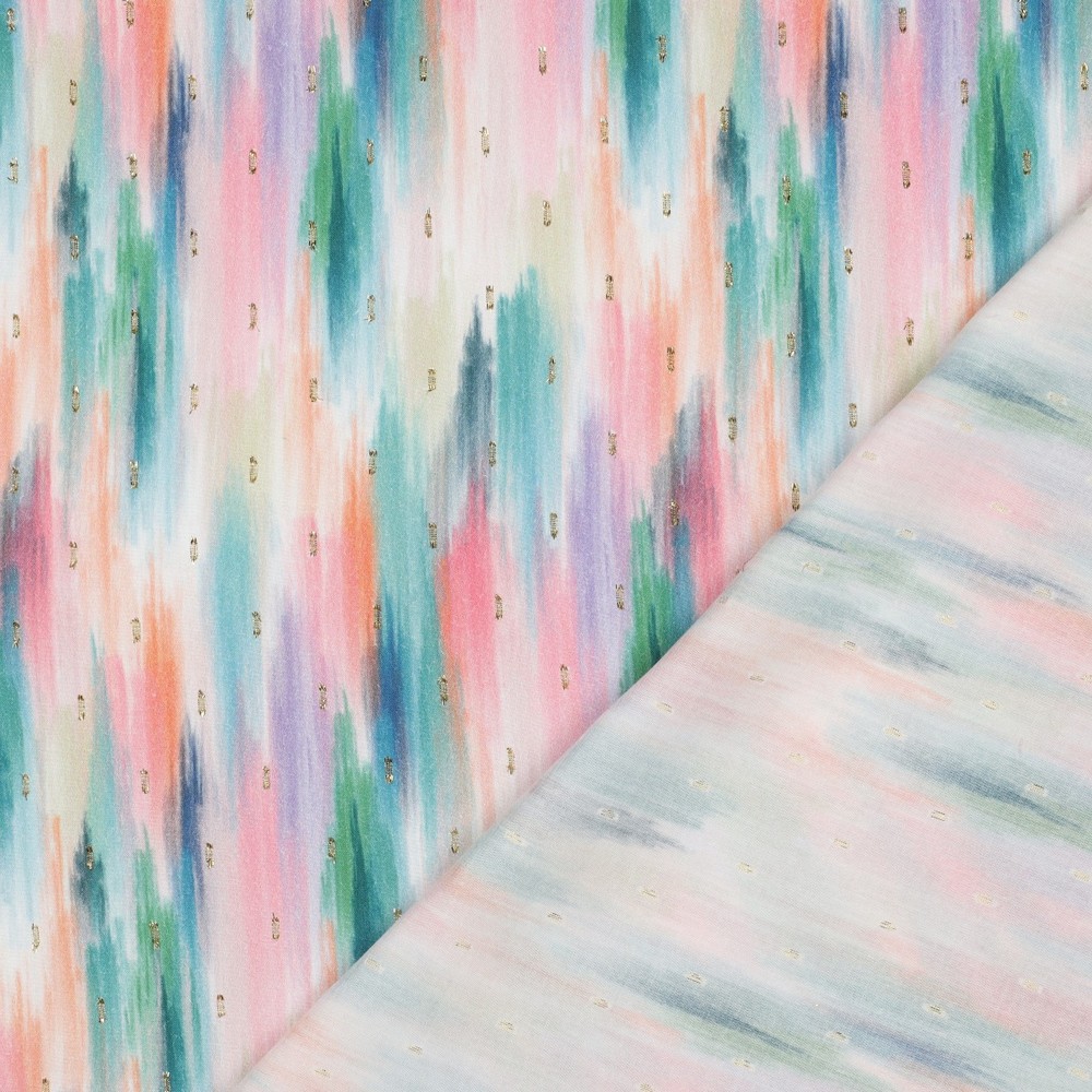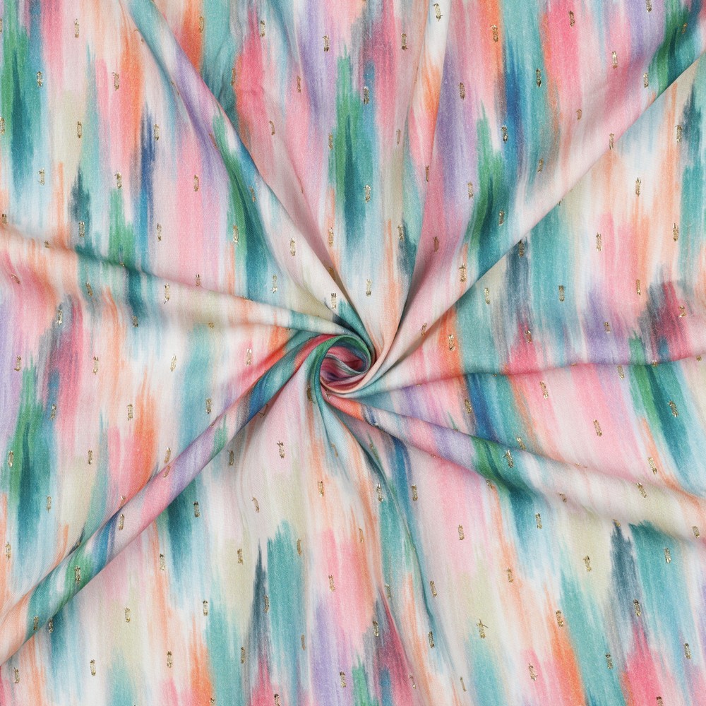 Ya sean blusas ligeras, vestidos fluidos, túnicas veraniegas o pañuelos livianos: este estampado de rayas abstractas convierte cualquier proyecto de costura en una pieza favorita única con un elegante efecto brillante.