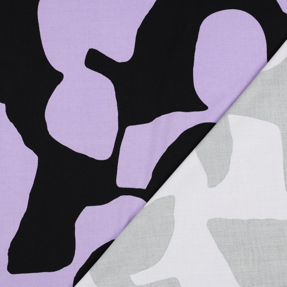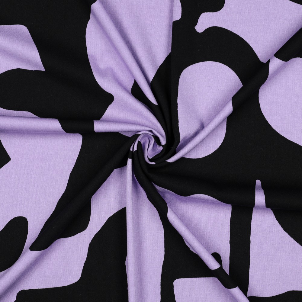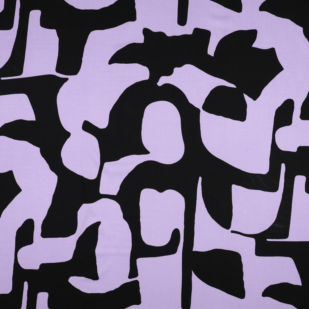 Una pieza moderna para todos los que aman las formas claras y los colores expresivos: en esta tela se encuentran elementos gráficos y geométricos con un juego de colores elegante en diferentes tonos de morado y lila, acentuados por suaves contrastes en claro y oscuro. El diseño resulta elegante y a la moda, perfecto para quienes quieren dar un toque especial a sus outfits.
